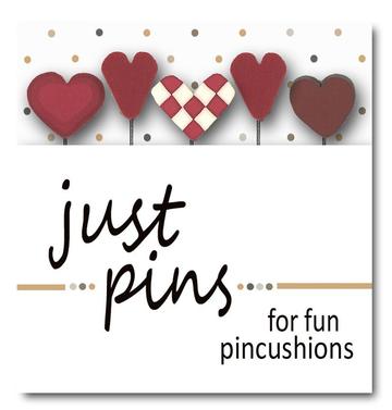 Straight pins topped with classic button images, wear one or stick a few in a pin cushion - packaged in the pictured assortments of five pins