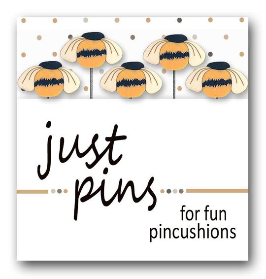 Straight pins topped with classic button images, wear one or stick a few in a pin cushion - packaged in the pictured assortments of five pins