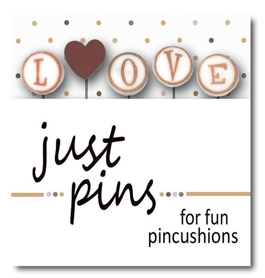 Straight pins topped with classic button images, wear one or stick a few in a pin cushion - packaged in the pictured assortments of five pins