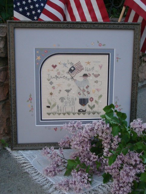 Kit includes  32ct Antique Ivory Belfast Linen, silk fibers from Gloriana and Thread Gatherer, embellishment pack with tiny JABCO buttons, chart and a needle.