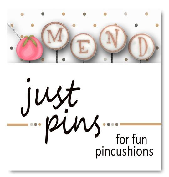 Straight pins topped with classic button images, wear one or stick a few in a pin cushion - packaged in the pictured assortments of five pins