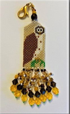 Kit includes delica beads, specialty beads, charm, findings, nymo thread, instructions and needles.
