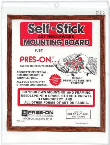 PRES ON-Mounting Board: 5 x 7in. Acid free and chemically inert. High tack, pressure sensitive adhesive for precise centering of artwork. 80 point (.80in) thick chipboard. Made in USA.