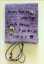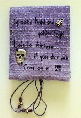Kit includes 28Ct linen by Zweigart, "Thunderstorm", Treenway Silks (3), Hannah Silk Ribbon "Stormy Monday", cotton quilt lining, interfacing, Swarovski Crystals, triangle beads, silver beads and charm, pewter skull and grosgrain ribbon
