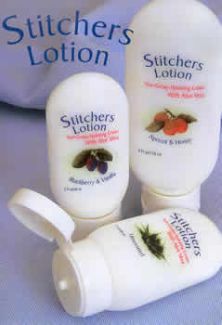 Luxuriously soothing lotion that is safe to use even while stitching. Won't stain fabric or threads. Easily washes out if any would happen to get onto your project. Non-greasy hydrating cream contains Aloe Vera.